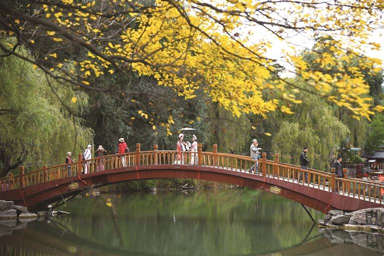 金秋十月,避暑山庄景区内层林尽染、秋景如画,吸引游人穿上古装打卡避暑山庄秋景。近年来,“沉浸式旅游”逐渐成为旅游新风尚,其中“古装体验”是最热门的游玩方式之一。避暑山庄内古装游玩等活动火热,催生了文旅新场景,释放出了文旅消费新活力。图为游客正在避暑山庄体验古装游。
